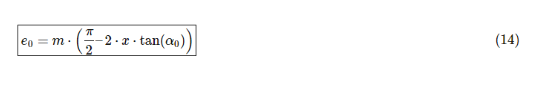 在极限情况下,切点 B 与啮合端 E 重合,就像绿色齿轮的情况一样。根据得到的几何形状,可以确定给定标准压力角 α0的变位系数 x 。