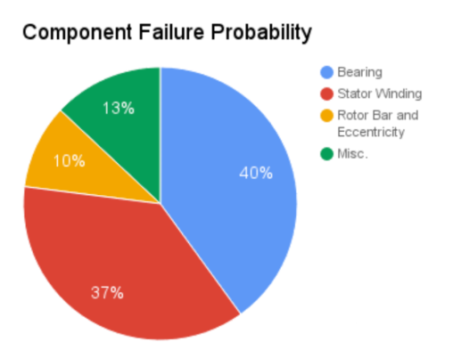 首次故障时间的平均故障率约为 3.13%。电机的不同组件具有不同的故障可能性。如果电机出现故障,则主要部件出现故障的可能性如下: