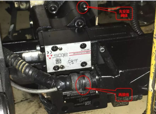 第一步:拆线、从油站本体上拆下比例溢流阀